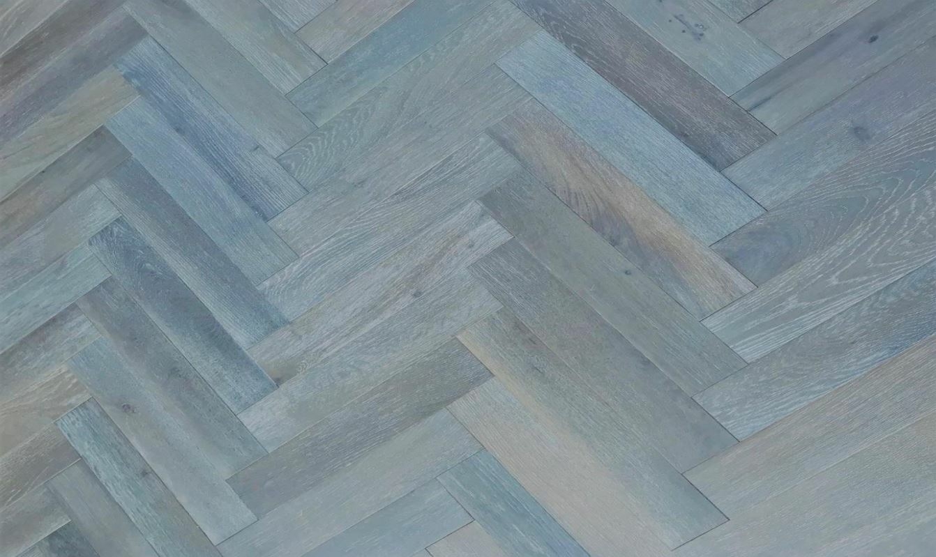 Tradition Select Engineered Oak Herringbone Flooring, Brushed Dark Grey, UV Oiled 90x15x450mm